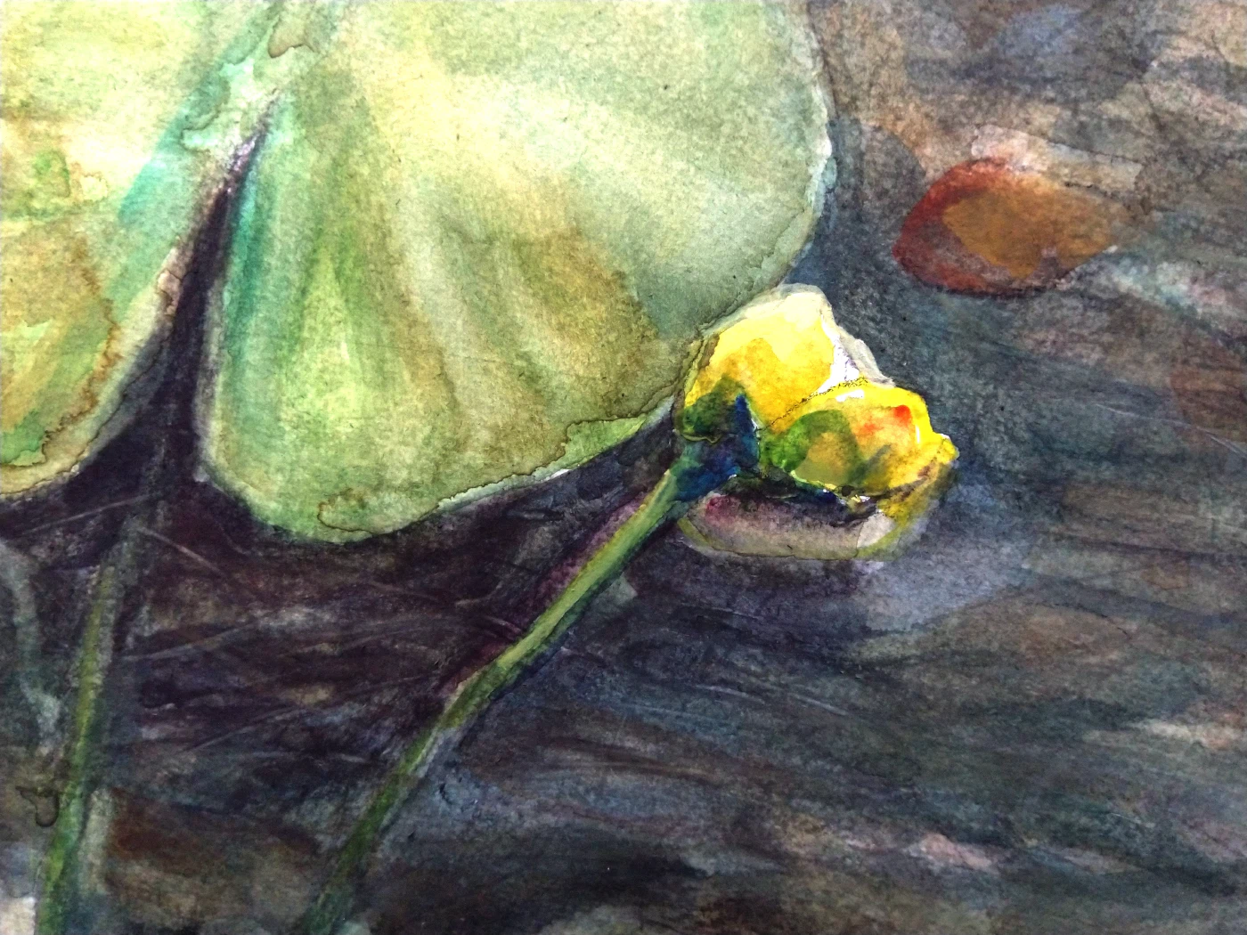 Een gele plomp (Nuphar lutea) met verschillende bloemen uit onze vijver.