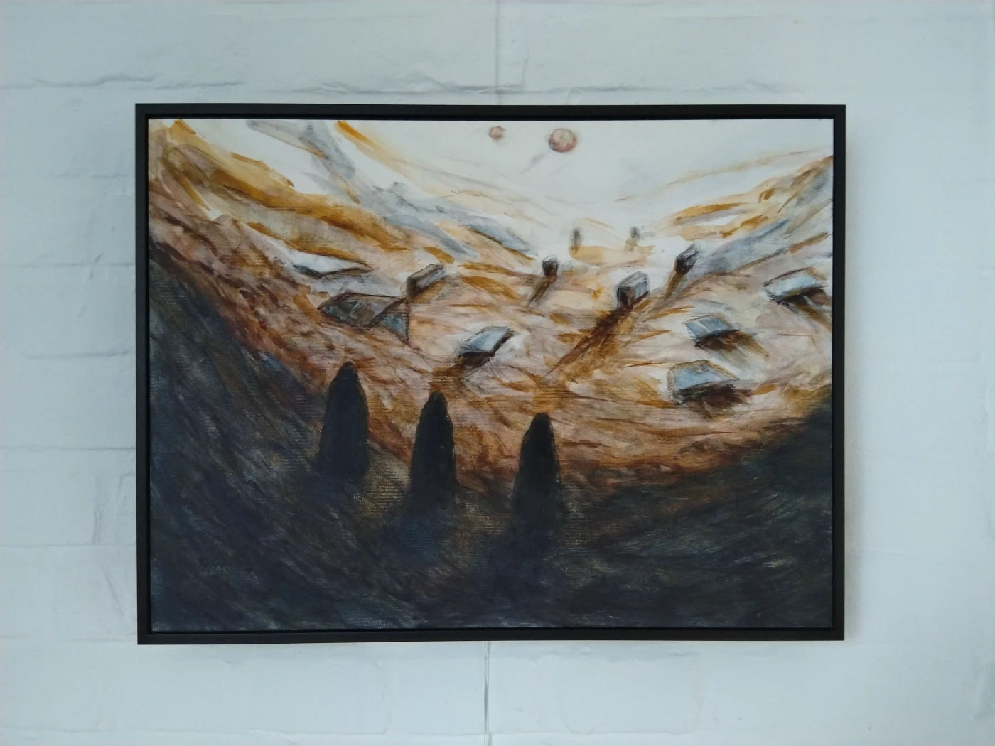 1. Dit kunstwerk is reeds ingekaderd en kan dus direct aan de muur gehangen worden zonder extra kosten.
